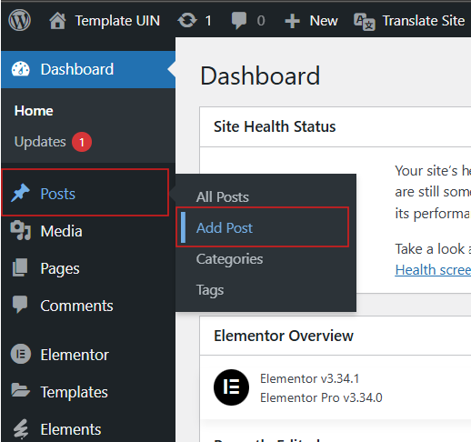 - Klik “post” pada halaman dashboard wordpress anda, lalu klik ” add post”.