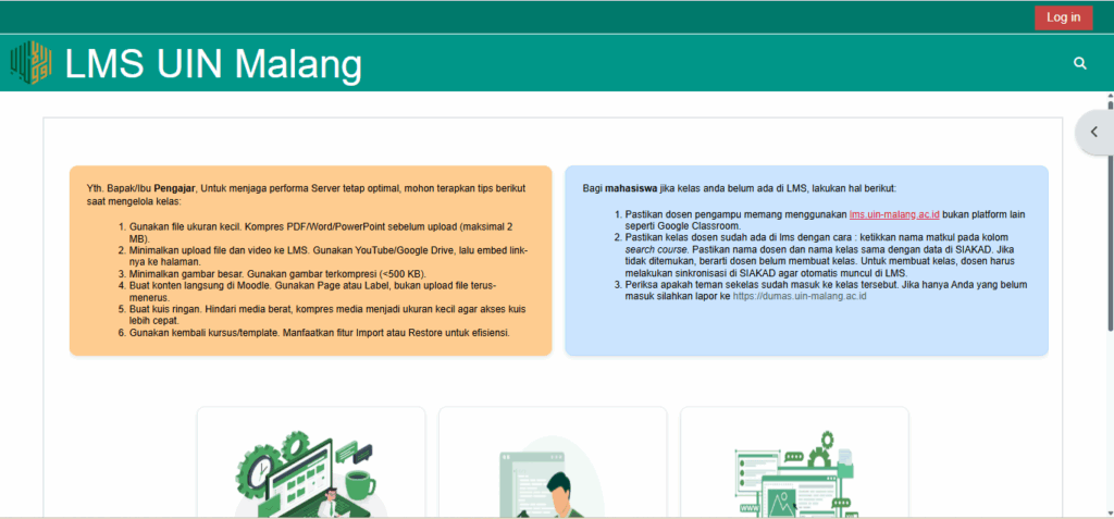 Bagi dosen yang mengalami mahasiswanya belum lengkap atau belum bergabung pada LMS (lms.uin-malang.ac.id), berikut langkah-langkah untuk melakukan sinkronisasi manual melalui SIAKAD agar mahasiswa dapat bergabung pada kelas dan mengakses materi perkuliahan dengan lancar: Login ke Sistem SIAKADMasuk ke portal SIAKAD UIN Malang menggunakan akun dosen Bapak/Ibu. Klik Menu Kelas E-LearningCari dan pilih menu Kelas E-Learning […]